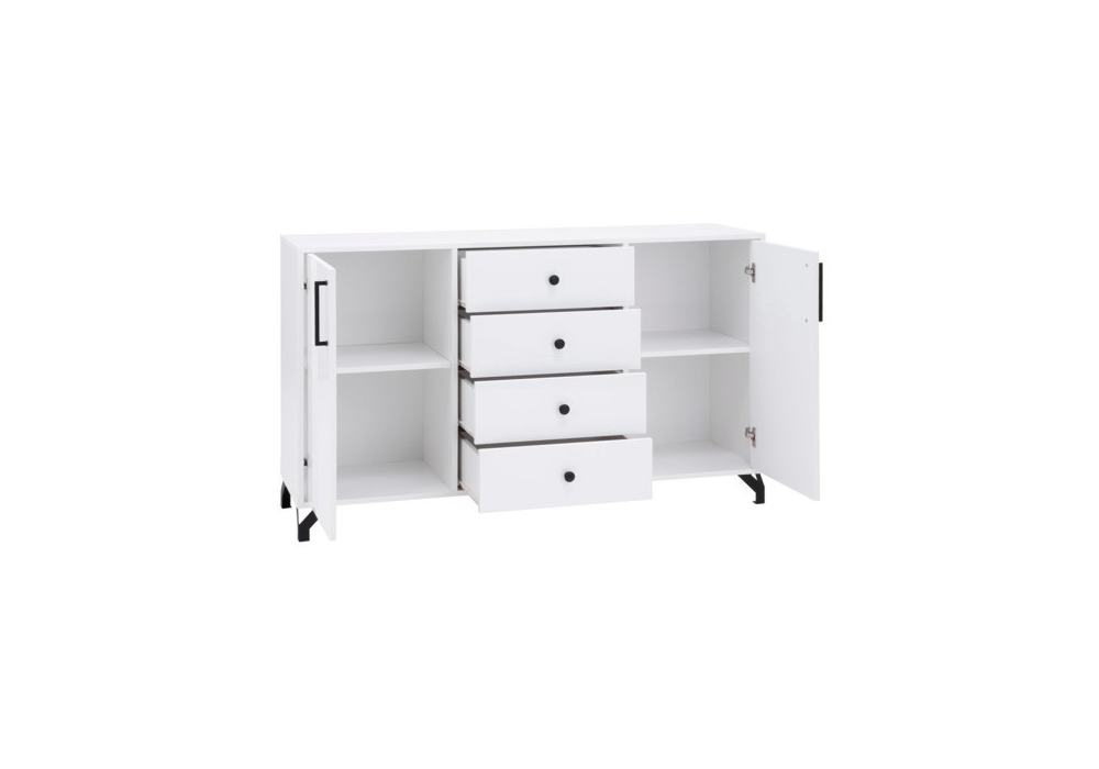 - 4 szuflady oraz dwoje drzwiczek; za drzwiczkami półki