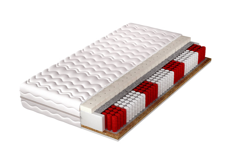 - wkład: sprężyna - multipocket 7 stref twardości; ilość sprężyn - 506 szt / m2