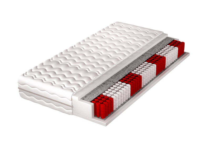 - wkład: sprężyna - multipocket 7 stref twardości; ilość sprężyn - 506 szt / m2