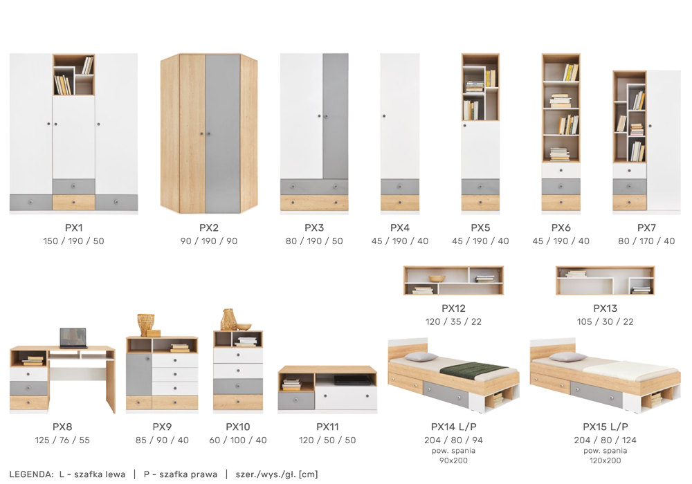 - dąb biszkoptowy + biały lux + szary (jak na zdjęciu)