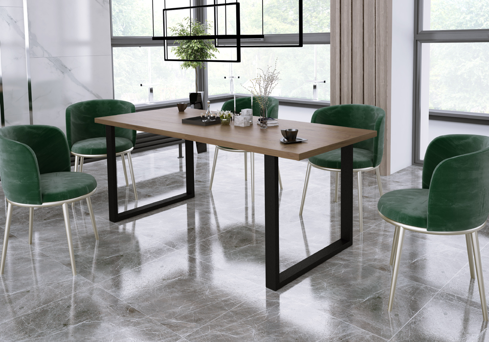 - blat stołu grubości 28 mm; nogi czarny mat malowane proszkowo; profil nóg 80x40 mm
