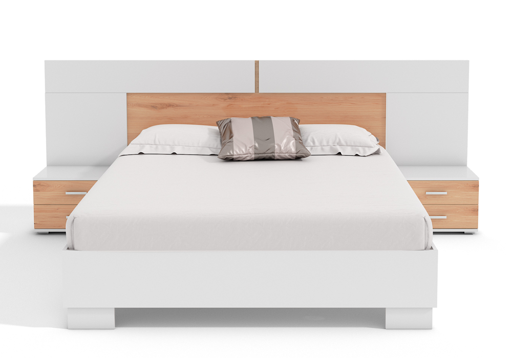 1) łóżko 160x200 ze stelażem i stolikami nocnymi [ZY-2] - 1 szt (szerokość - 262 cm / wysokość - 100 cm / głębokość - 204 cm)