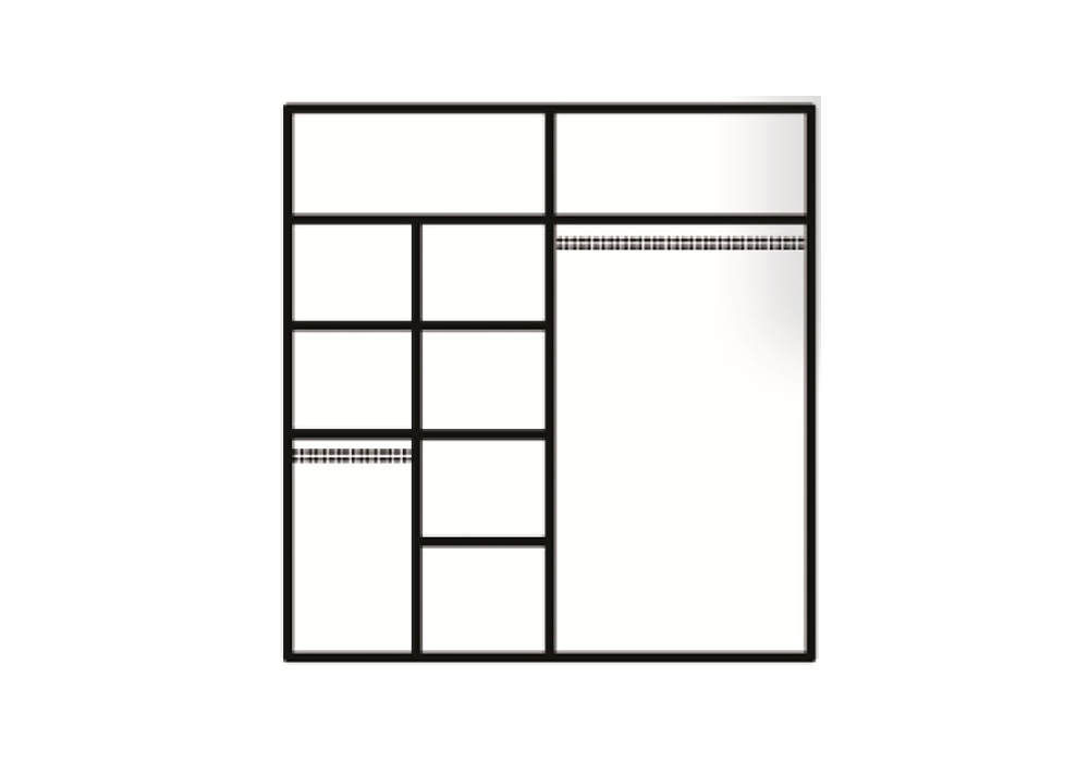 - w szafie dużo półek oraz dwa drążki na wieszaki
