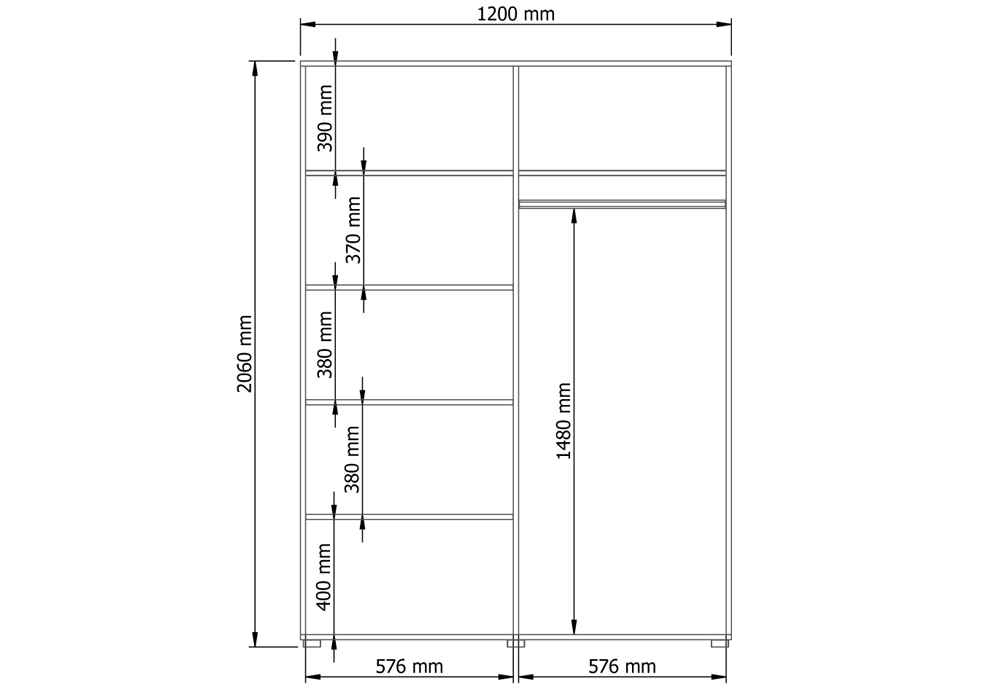 - szafa posiada 4 drzwi, w tym dwoje z lustrami; w środku półki i drążek na wieszaki