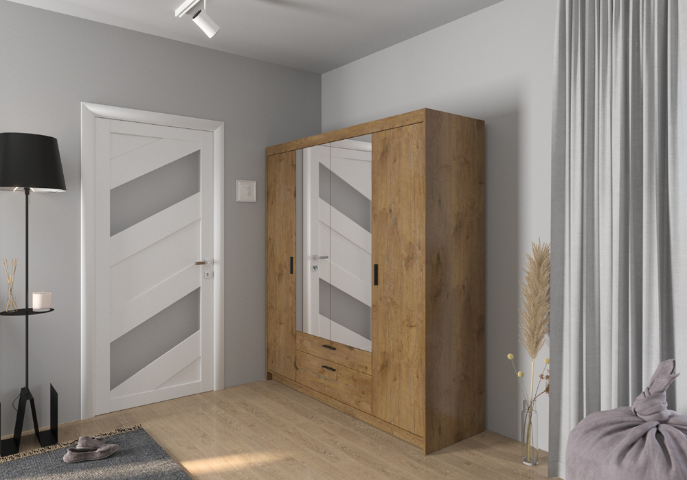 - w szafie półki, drążki na wieszaki oraz szuflady