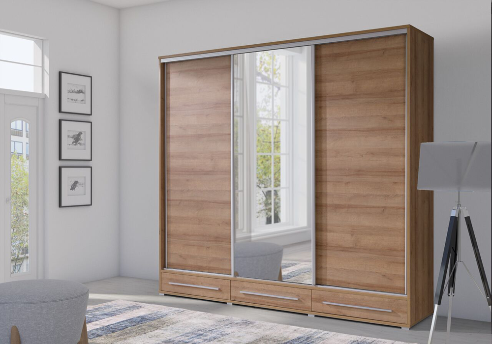- szafa z drzwiami przesuwnymi z lustrem; na dole szuflady