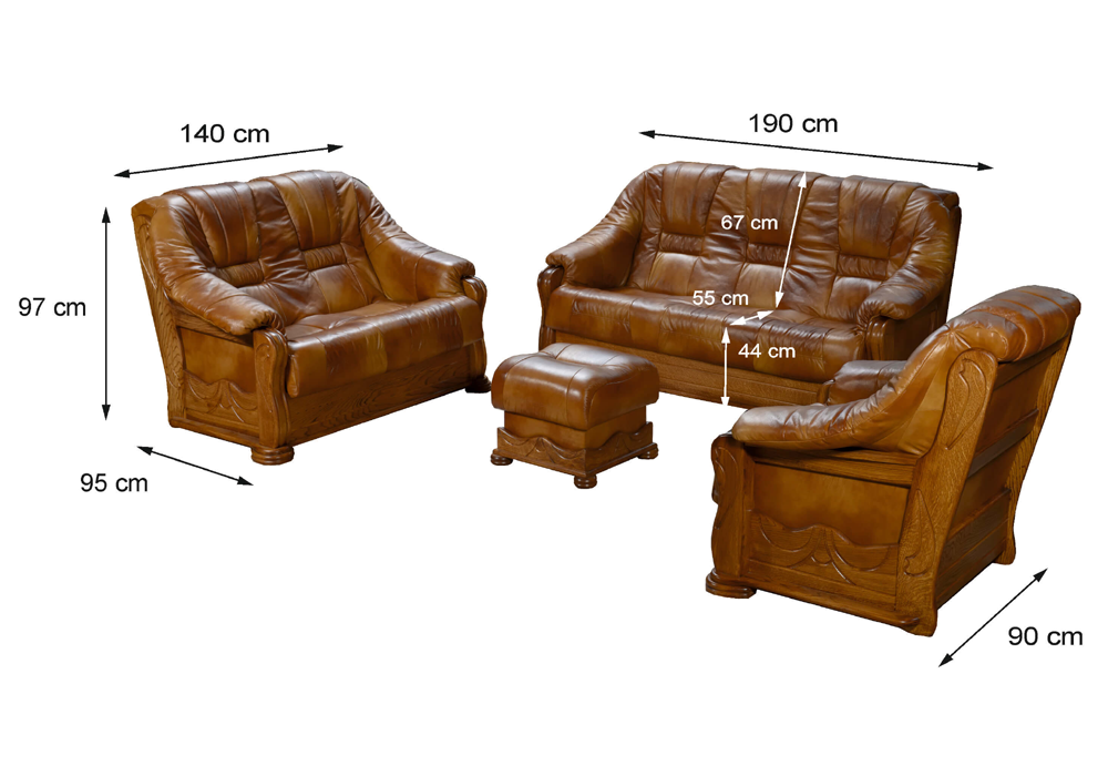 Zestaw mebli klasycznych ze skóry "BORN" Sofa 3-osobowa + 2 fotele