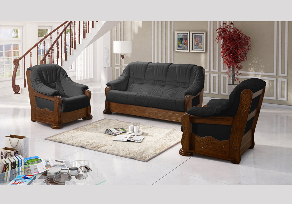 Zestaw skórzany klasyczny "BORN" Sofa 3-osobowa + 2 fotele